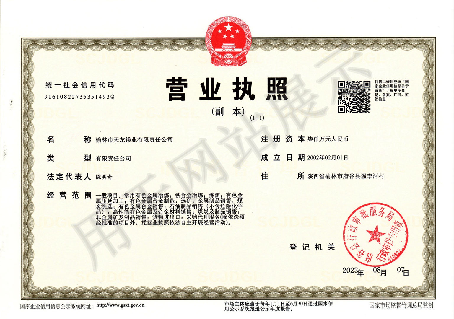 - 其他說明: 天龍鎂業(yè)駐西安辦事處(貿(mào)易部)